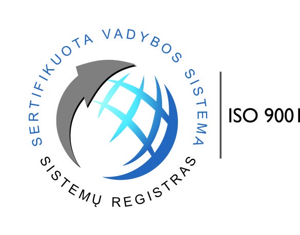 Įdiegėme ISO 9001 sistemą, užtikrinančią nuolatinį kokybės gerinimą ir klientų poreikių tenkinimą.